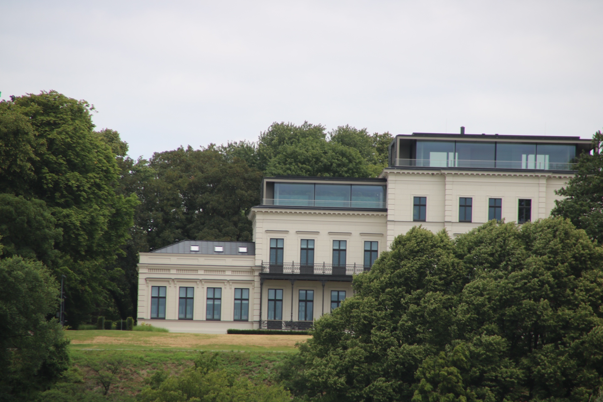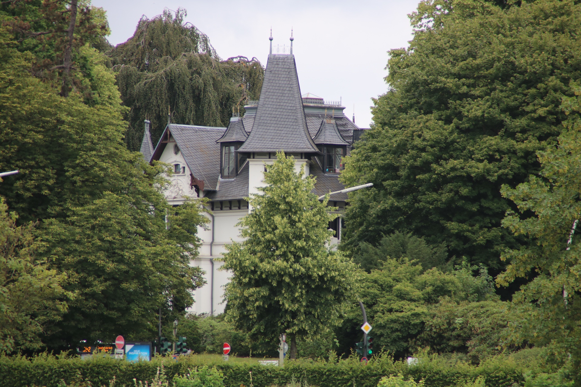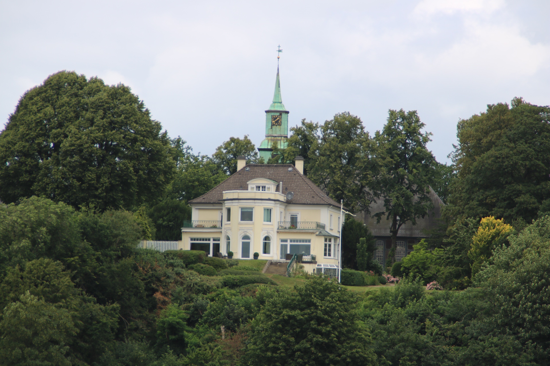 Die Fahrt mit dem Bus macht sogar Spaß, weil man zusätzlich noch eine Stadtrundfahrt durch das Villenviertel an der Elbchaussee bekommt. Wir sind am Rathaus von Altona vorbeigefahren und dann die Elbchaussee im Stadtteil Nienstedten entlang. Und da stehen vielleicht Anwesen. Von der Straßenseite sehen die schon imposant aus, wie schaut das dann erst von der Wasserseite aus?