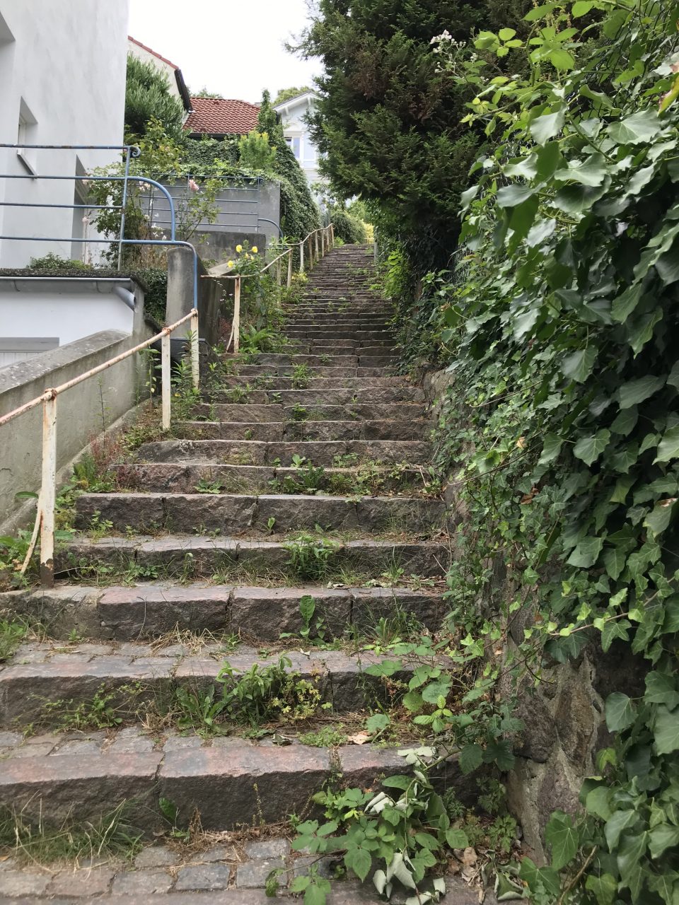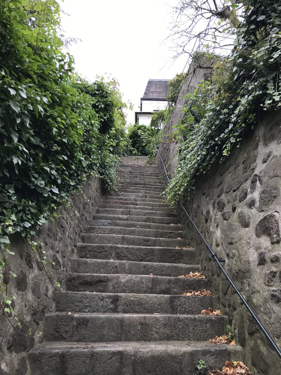 Von Brandts Weg auf Krögers Treppe bis Lange Straße. Dort kurz nach rechts gehen, um dann wieder links auf die Bornholds Treppe zu stoßen. Diese Treppe hat es in sich. Die ist ganz schön lang und es ging aufwärts, weil ich mir ja in den Kopf gesetzt hatte, dass ich in Hamburg Bergsteigen muss. Wenn schon nicht in Bayern, dann aber doch in Hamburg.